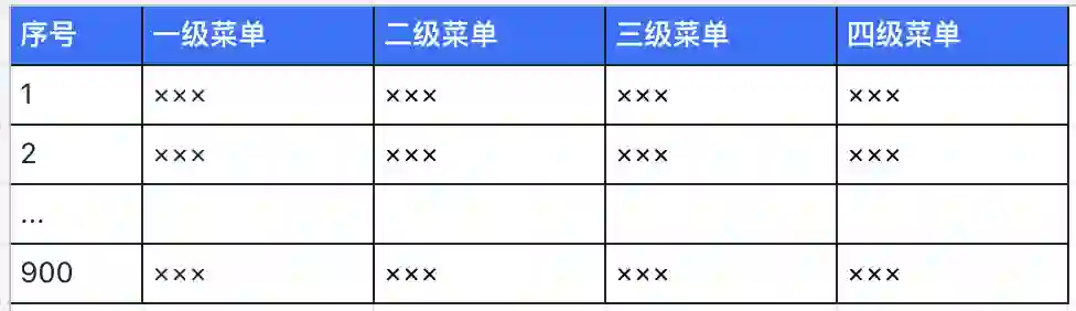 安排几个同事把系统的所有菜单都用 Excel 整理出来,包括一级菜单,二级菜单,三级菜单等,最后统计下来有 900+ 页面。