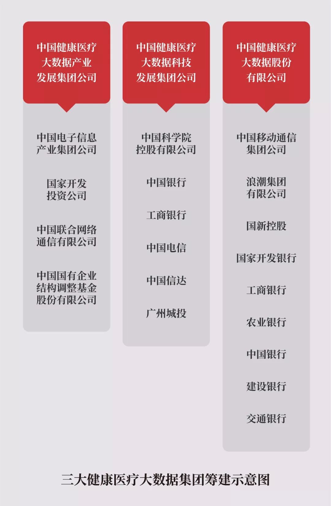 2016年6月,《关于促进和规范健康医疗大数据应用发展的指导意见》印发,将健康医疗大数据应用发展纳入国家大数据战略布局,由中国电子、中移动、中科院分别牵头,成立三大健康医疗大数据集团。