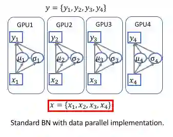 使用多GPU卡训练的情况下Batch Normalization(BN)可能会带来很多问题,目前在很多深度学习框架如 Caffe、MXNet、TensorFlow 和 PyTorch 等,所实现的 BN 都是非同步的(unsynchronized),即归一化操作是基于每个 GPU上的数据独立进行的。