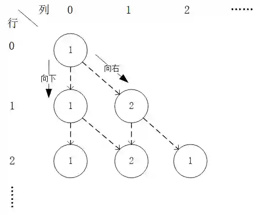 数字三角形示例。此示例中最优动作序列为“向右-向下”,最优路径为“(0, 0) - (1, 1)
