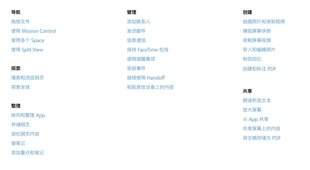 基础知识: 若你对 Mac 以及 iPad 一般熟悉,或想要学习更多用法,这时可以学习「iPad」,「Mac」入门这两本书。这两本书涵盖了图书,Safari 浏览器,访达文件管理,快速搜索,多窗口管理,PDF 编辑,照片整理,视频录制等等的基础知识。内容深入浅出,跟着读完你应该能自称「高级用户」了,你会比一般人更了解你的设备可以为你提供什么。