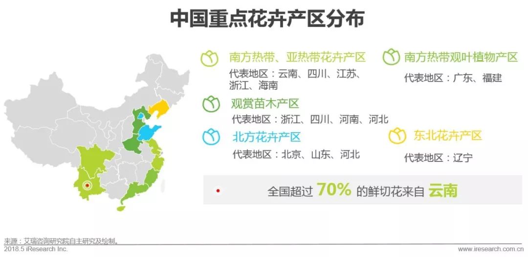 艾瑞分析认为,云南鲜切花产量提升的主要原因在于:1)种植面积的扩张,花卉生产区域由滇中为主向禄劝、江川、通海、玉溪、石林、宜良、弥勒、泸西、陆良等地拓展;2)规模化的企业运作方式,生产管理、种植技术等生产方式得到改善,减少恶劣天气及病虫害影响,且适合优质种苗及新品种的生产,优质花率高,产量稳定。但由于大部分土地仍掌握在个体花农手中,只有积极推动土地流转,再加上资本的投入,才能真正释放生产力。
