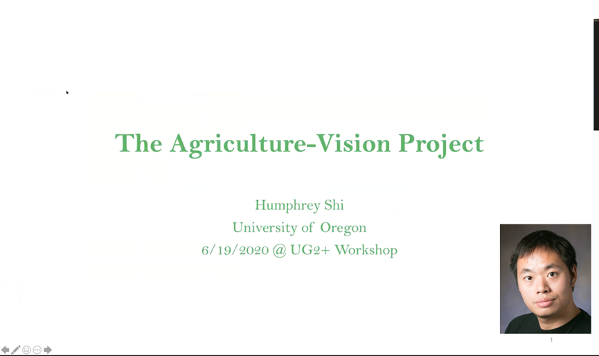来自美国俄勒冈大学的Humphrey Shi助理教授进行了题为《The Agriculture-Vision Project》的报告,报告内容主要介绍了深度学习在视觉识别任务,尤其是近年来在农业上的应用也受到了人们的关注。但是目前的农田视觉模式识别缺乏合适的农业图像数据集,计算机视觉与农业科学的融合进展甚微。因此,Shi博士构建了一个用于农业模式语义分割的大规模空中农田图像数据集,所构建的数据集从全美三千多个农田中收集了近十万张高质量的航拍图像并进行了农业模式特定的标注。同时,Shi博士介绍了一种基于新的航空农业模式识别模型,解决了农业视觉对计算机视觉和农业领域提出的几个挑战。