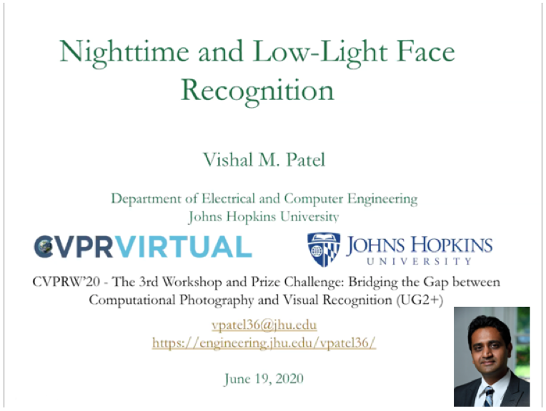 其次,来自美国约翰霍普金斯大学的Vishal M. Patel助理教授进行了题为《Nighttime and Low-light Face Recognition》的报告,主要介绍了在夜间环境或暗光环境下的由于缺乏足够的训练数据而导致的人脸识别挑战性问题。他介绍了现有方法通过利用其它模态人脸辅助的人脸识别方法以及其缺陷问题,然后介绍了一种针对非可见光环境下的,基于人脸内部变化及人脸不变特征进行人脸建模及人脸识别的鲁棒性方法,所提出的方法在夜间和低光照环境下可以得到显著的性能改进。