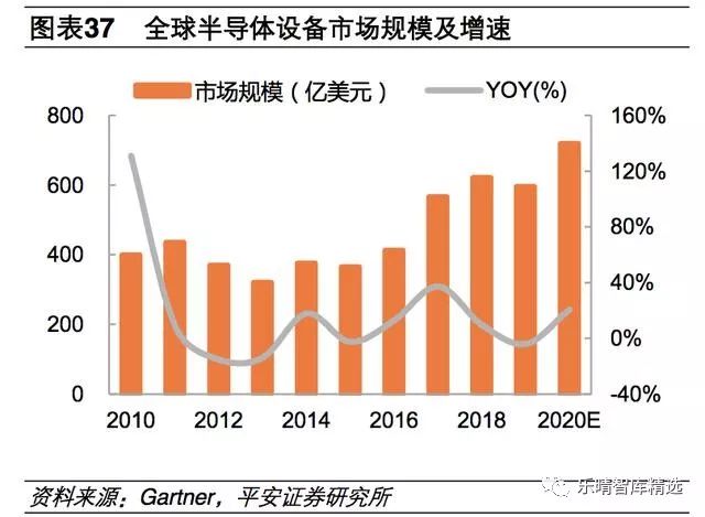 在2018年全球半导体设备市场区域分布情况中,中国市场逐步崛起:从半导体装备销售额情况看,从2014年开始,北美半导体设备投资逐年减少,日本基本维持稳定,整个半导体制造的产能转移到了韩国、中国台湾地区和中国大陆。随着众多晶圆代工厂在大陆投建,大陆设备市场增速将超过全球增速水平。