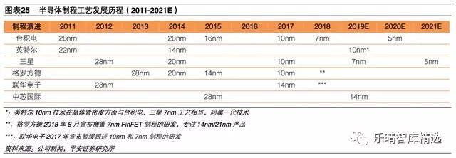 台积电、三星得益于智能手机芯片庞大出货量,在制程工艺方面拼命追赶。从2011年落后英特尔一代制程到15年赶上,最终在17年实现反超。