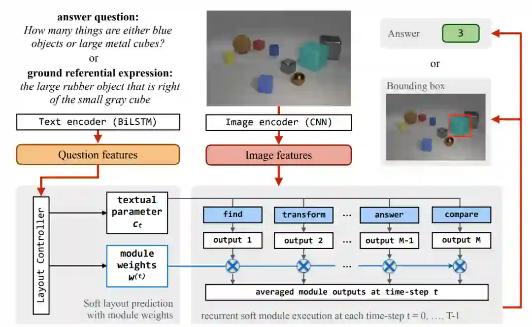 ,作者使用基于与问题推理步骤相一致的动态组合模块的端到端模块网络(N2NMNs)进一步解决了可视化问题回答任务。