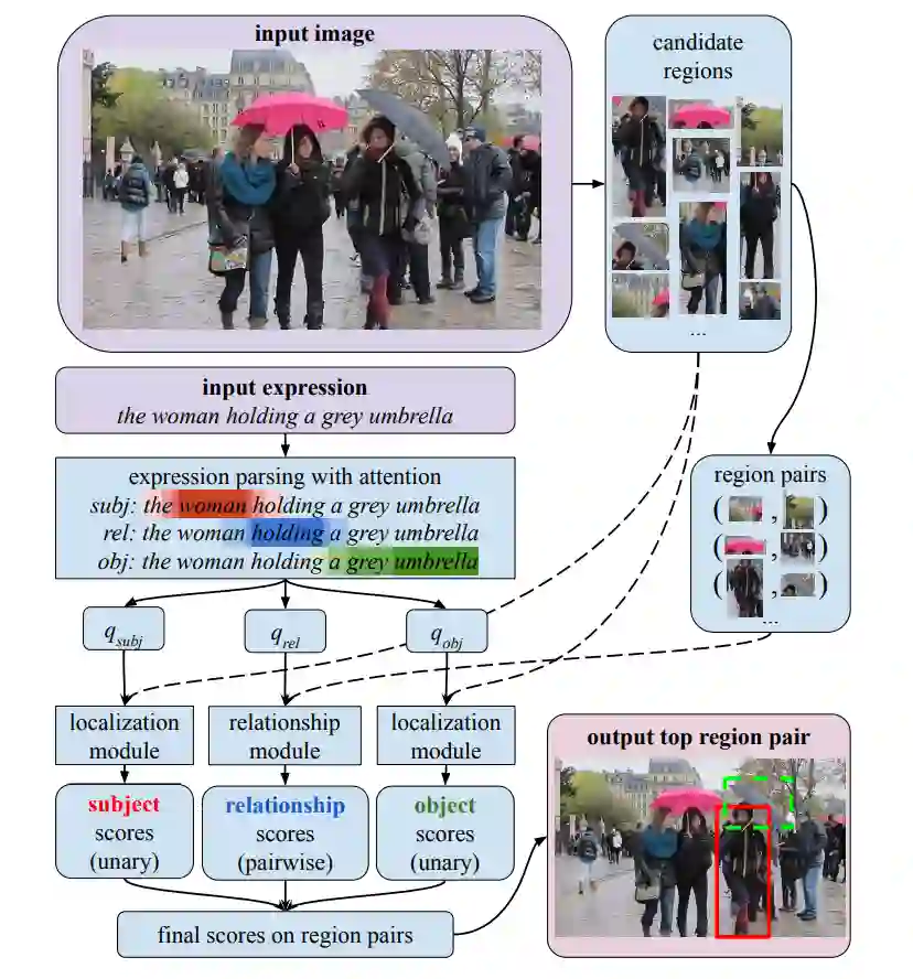 在给定一幅图像和一个表达式的基础上,我们学习如何将表达式解析为带有注意力的主语