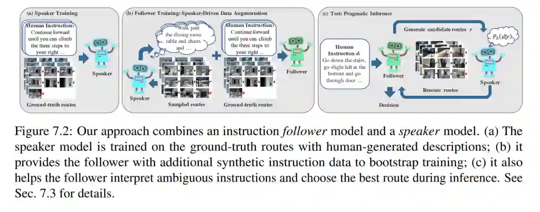 ,作者提出了导航教学跟随任务的Speaker-Follower模型,并给出了一对speake模型和一个互补的follower模型。