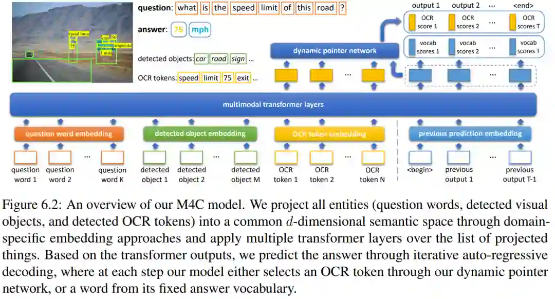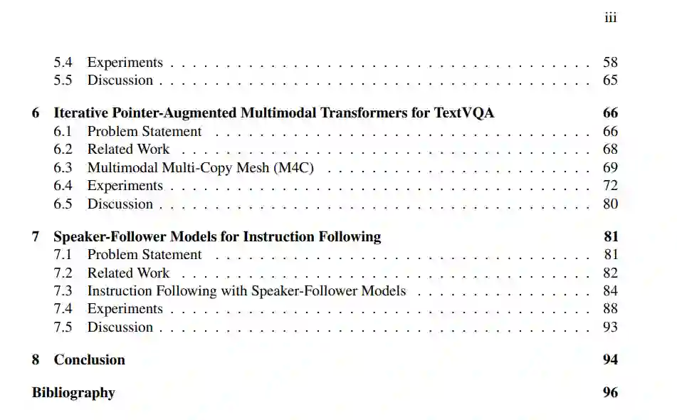 ,除了模块化推理之外,作者还提出了用语言条件图网络(LCGNs:Language-Conditioned Graph Networks)构造视觉场景的上下文感知表示,并解决了第六章中用迭代指针增强多模态Transformers读取图像中的文本进行问答的问题。