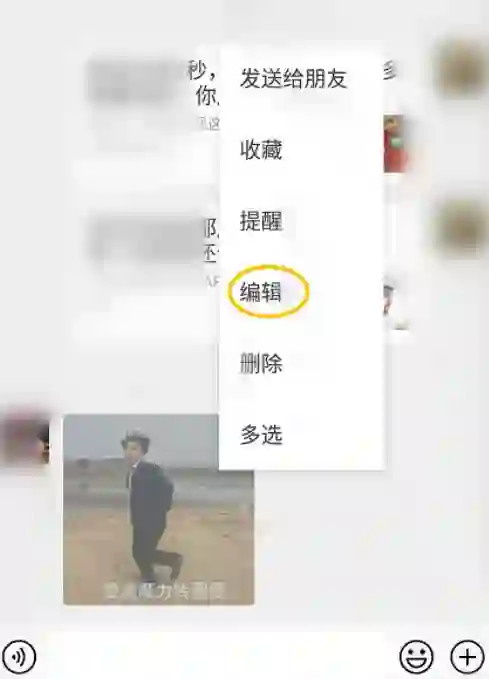进入方式:长按好友发送的图片(自己发送的也行),选择“编辑”即会进入图片编辑器。