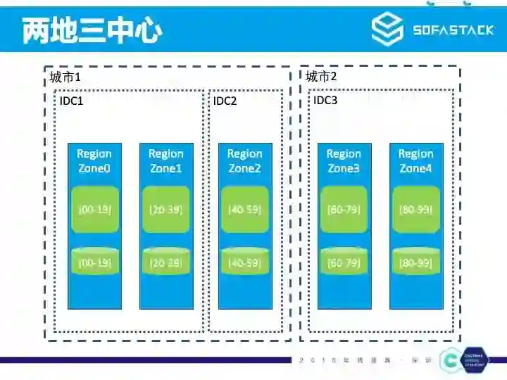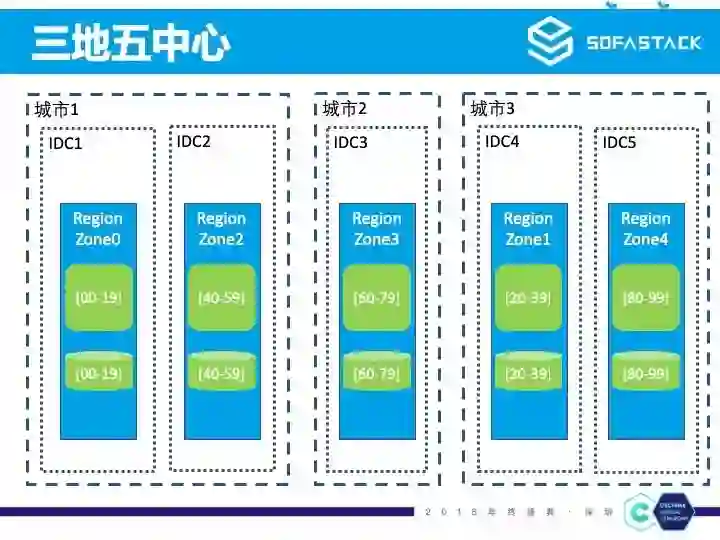从两地三中心到容灾能力更强大的三地五中心,我们只需要先进行第三个城市的机房建设,然后将部分 RegionZone 部署到第三个城市,最后再完成数据迁移和引流即可。