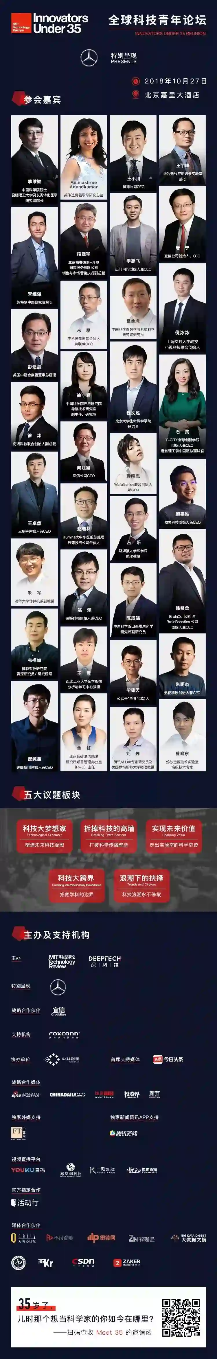 每一位获奖人,都在不同的领域获得了卓越成就,而这份成绩的背后离不开的是对前沿问题的探索与挑战,他们代表了科技与商业的创新精神。同时他们也演绎了不同的创新故事,我们期望倾听他们的最新见解,有鉴于此,《麻省理工科技评论》、DeepTech深科技决定联手梅赛德斯-奔驰将于 10 月 27 日,在北京嘉里大酒店举办“全球科技青年论坛—— Meet 35 ”(Innovators Under 35 Reunion)。