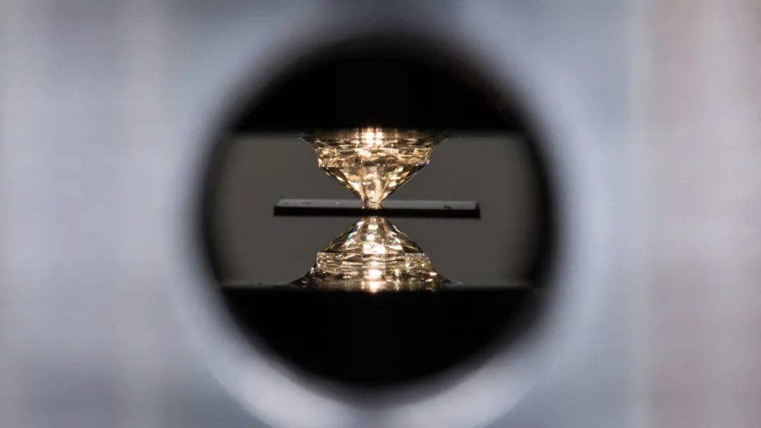 一种氢、硫和碳的化合物被压在两颗钻石之间,在室温下实现超导。图源/ADAM FENSTER