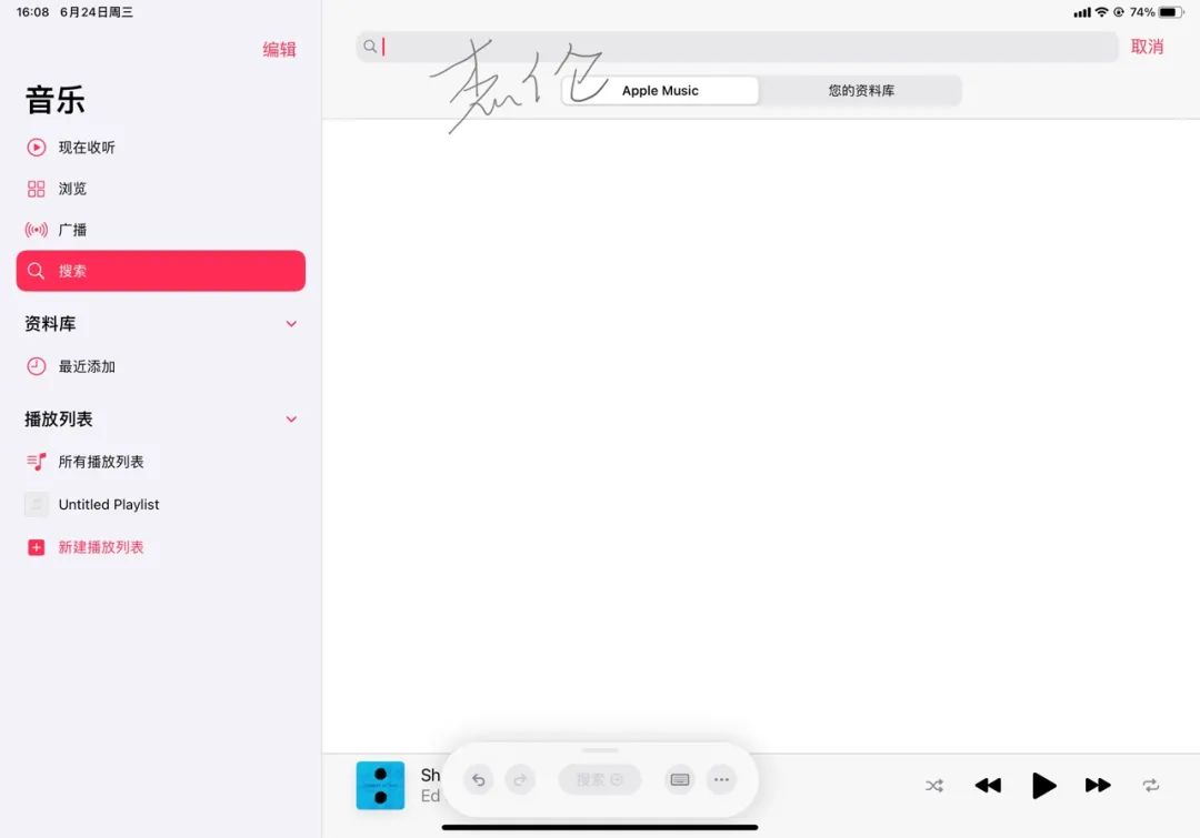 空格、选定和删减等功能也可以通过 Apple Pencil 操作