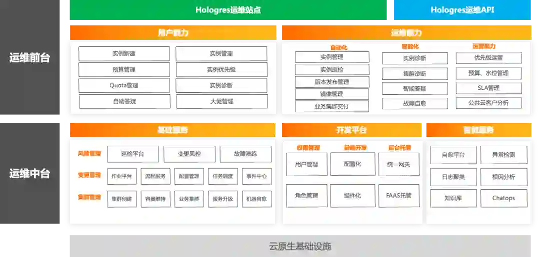 在Hologres实例的云原生调度和运维体系建设上,团队也联合阿里云云原生等团队,解决了在超大规模集群;在运维能力建设上,团队通过自动化、智能化的运维体系建设,解决了实例部署和稳定性保障的问题。