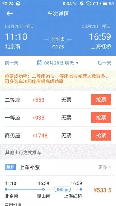 甚至在部分路段没票的情况下,智行可以通过上车补票等方案尽可能帮用户达到出行目的;