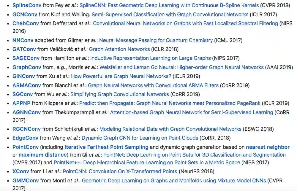 PyTorch Geometric 目前已实现以下方法,所有实现方法均支持 CPU 和 GPU 计算: