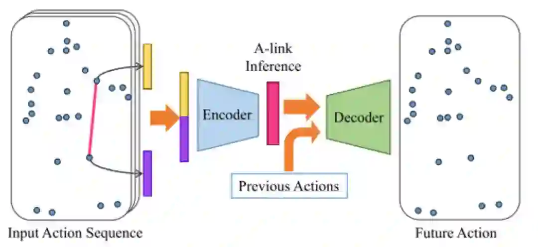 如图(c),Action-Link实际上就是每个关节和其他所有关节的连接,通过一个编码-解码器来学习这些连接的权重,进而发掘关节之间的潜在联系,如下图: