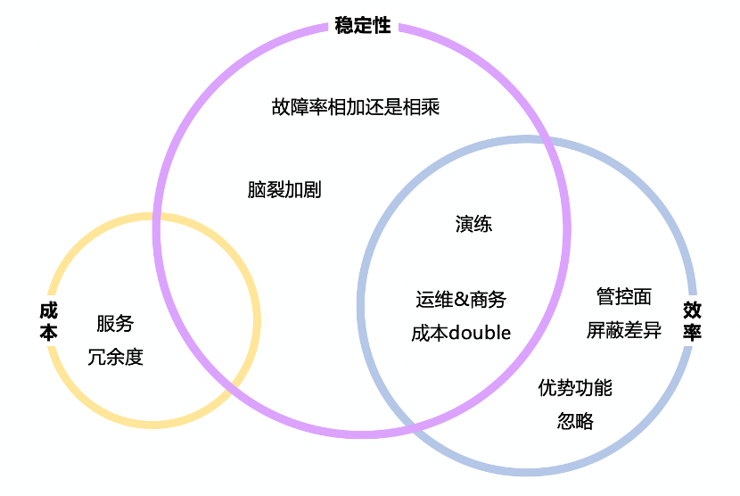 多活架构的优势很明显,但背后面临的挑战也是巨大的。下面从稳定性、成本、效率几方面来推演下。
