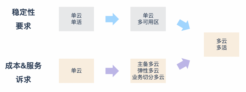企业选择混合云的技术诉求中,主要因素还是稳定性和成本 & 服务,而对这两点的极致追求就是多活架构。