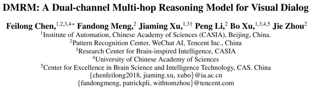 本文是对中科院自动化所和腾讯微信AI团队共同完成,被 AAAI2020 录用的论文《DMRM: A Dual-channel Multi-hop Reasoning Model for Visual Dialog》进行解读,相关工作已开源。