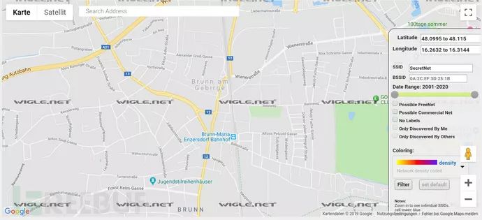 它包含wifi的wifi凭证,用于设置设备(或测试它)。绝对不是公司的无线网络。当我们想要找到与wifi名称相关的位置时,我们该怎么办?我们去wigle.net,输入SSID(= wifi名称),它会告诉我们在世界的哪个地方可以找到它。