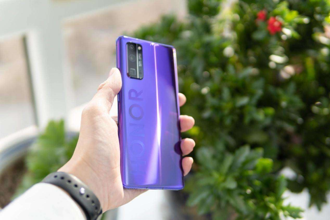 紫色的后盖在不同光线有不同的显示效果,折射的视觉效果是非常漂亮的。整体的后盖设计潮流中透露着对这次荣耀30系列的自信。