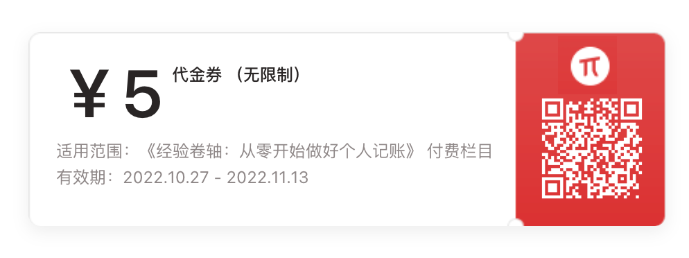 下周一(11.07)抽 2 位送出《经验卷轴:从零开始做好个人记账》栏目阅读权限。