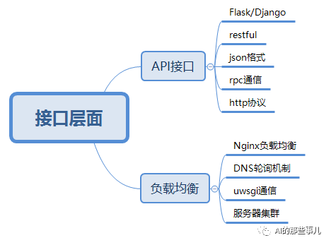 最后,我们再来说说接口层面。实际上,接口层面在很多公司也是推荐系统工程师需要掌握的内容。在这里主要需要掌握的点是API接口和负载均衡。