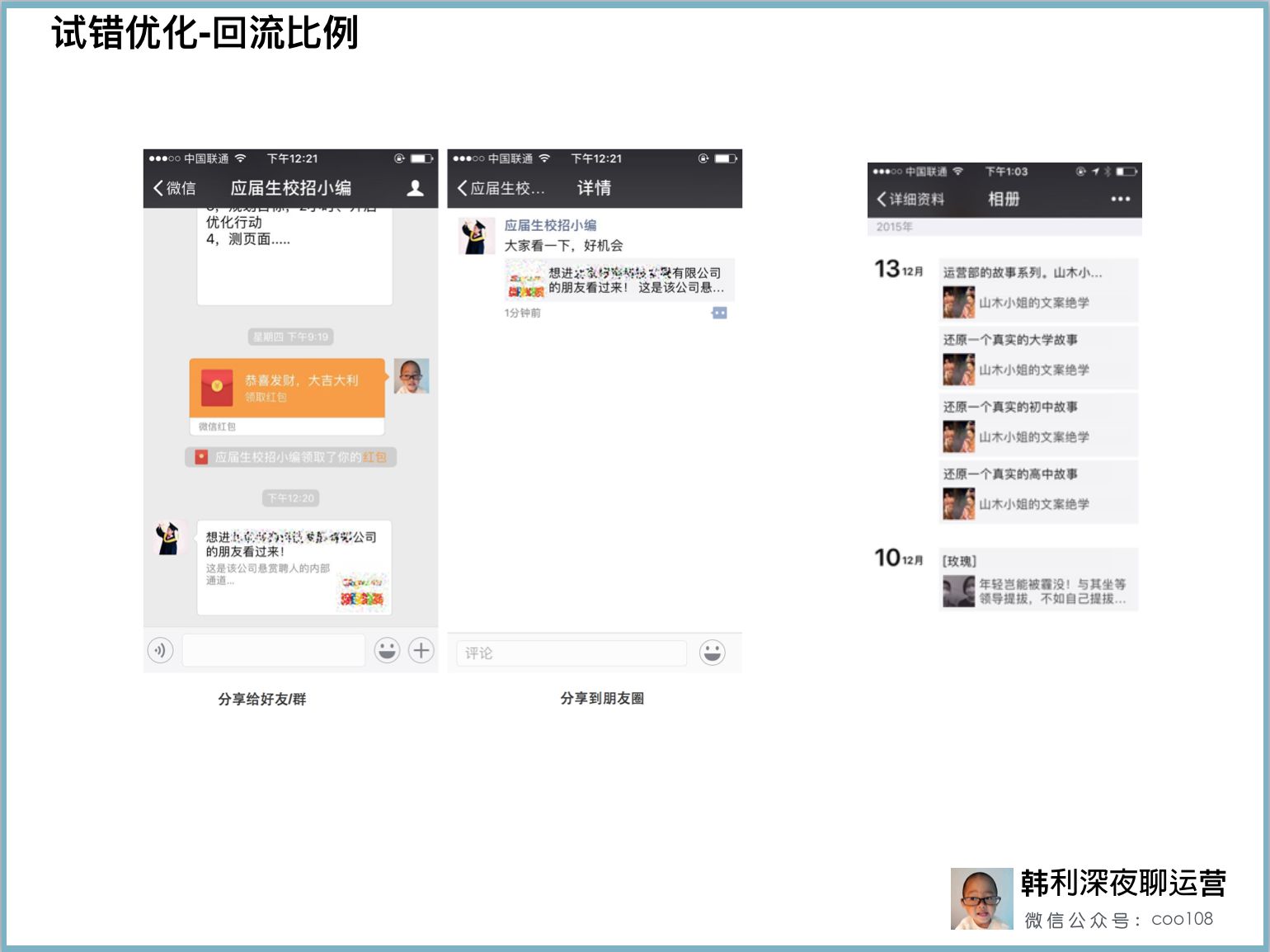 技术专门为我做了一套文案优化的后台,我调试了好多版分享分案,优化效果到了1:4——也就是说,1个分享带来了4个用户(病毒系数)。