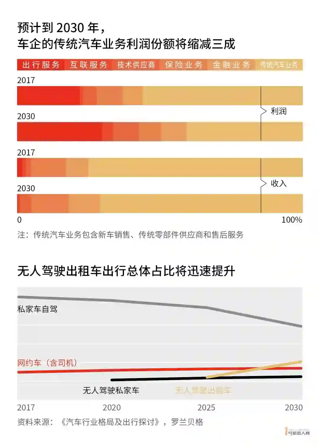 这恰恰是汽车企业最焦虑的事情。汽车行业公认,目前正处于百年未遇的转折点。未来人们或许不需要购买一辆专属于自己的汽车,无人驾驶出租车成为出行的主要选择,用车人并不在乎这辆出租车的制造者是奔驰还是比亚迪——这正是车企共同的噩梦。