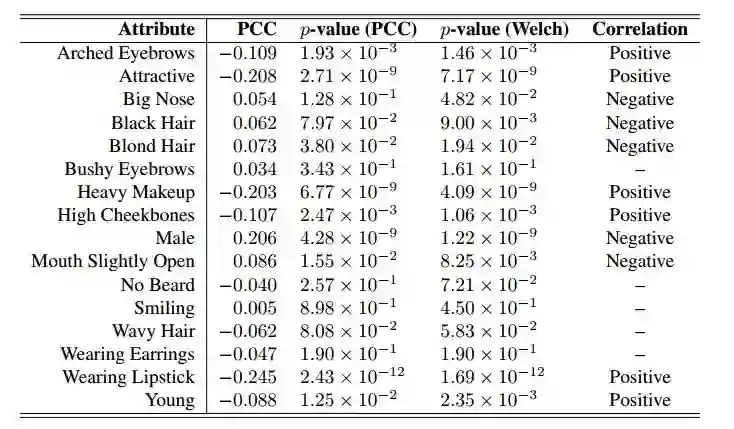 尽管在 [21, 41] 中存在一些不一致,但其中对于美的定义也存在一些共同之处。表 3 总结了两个相对较大的数据集中对美发挥正面或负面作用的一致特征。例如,浓妆、高鼻梁、涂口红等特征都会提升吸引力(美)。相对的,大鼻子、偏男性化(指女性)、嘴唇微张则会对吸引力产生负面影响。