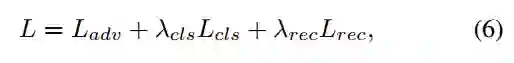在实践中,成功地训练 GAN 是一项非常困难的任务,不过现在已经有了许多改进。StarGAN 已经在图像到图像的迁移任务中取得了令人印象深刻的进展。在训练中除了使用对抗损失外,还采用了特征分类 L_cls 和图像重建损失 L_rec,实现了当前最先进的特征迁移性能。完整目标函数如下: