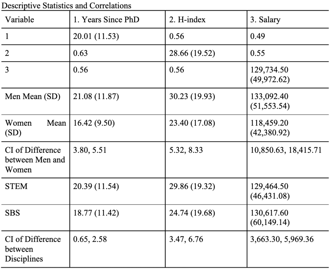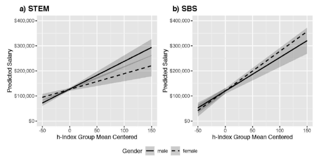 一个h指数为49的女性STEM学者,其薪酬要比具有相同h指数的男性STEM学者少大约6000美元。