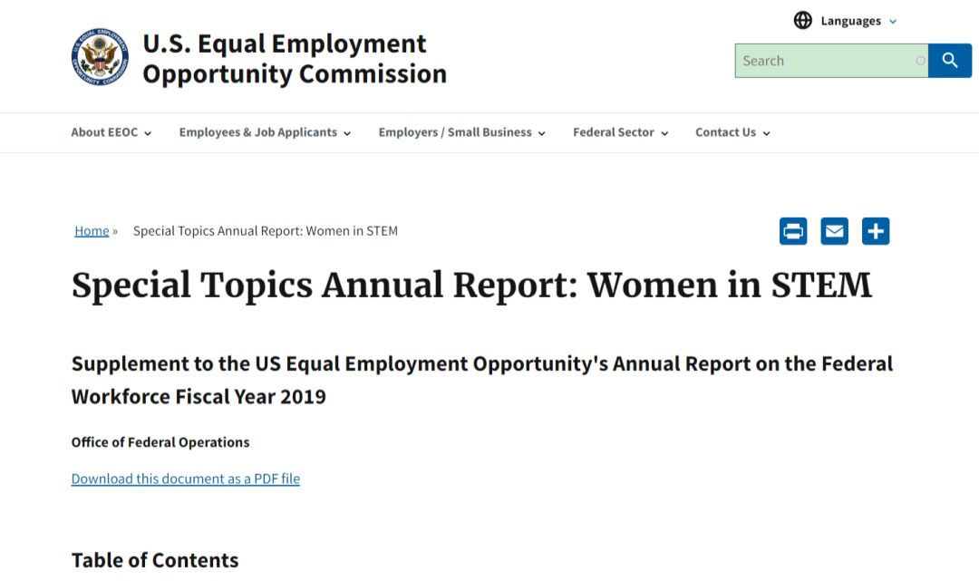 根据美国平等就业机会委员会(EEOC)发布的一份报告,2019年,在美国联邦政府的统计的(STEM)工作岗位中,女性仅占29%。