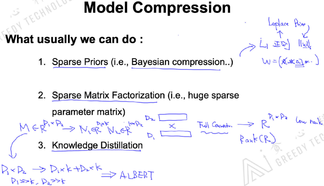 上面讲了许多词嵌入的模型,但是有许多模型参数巨大,不能在有限的机器上训练出来,在工业界落地那就更难了。因此,有一部分学者就在模型压缩方面做了一些工作,我认为在未来一段时间很多工作都会围绕模型压缩来做。模型压缩有以下几种方式:
