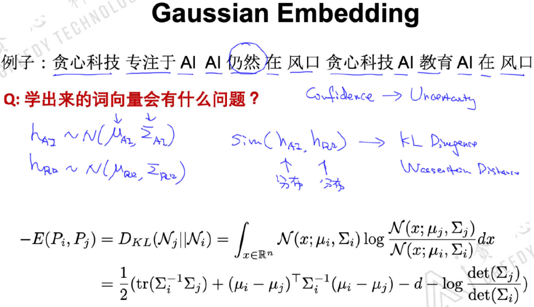 其中, 是模型学出的单词“AI”的词向量, 是词向量服从的分布。 表示了AI这个词向量, 表示了对结果的不确定性。