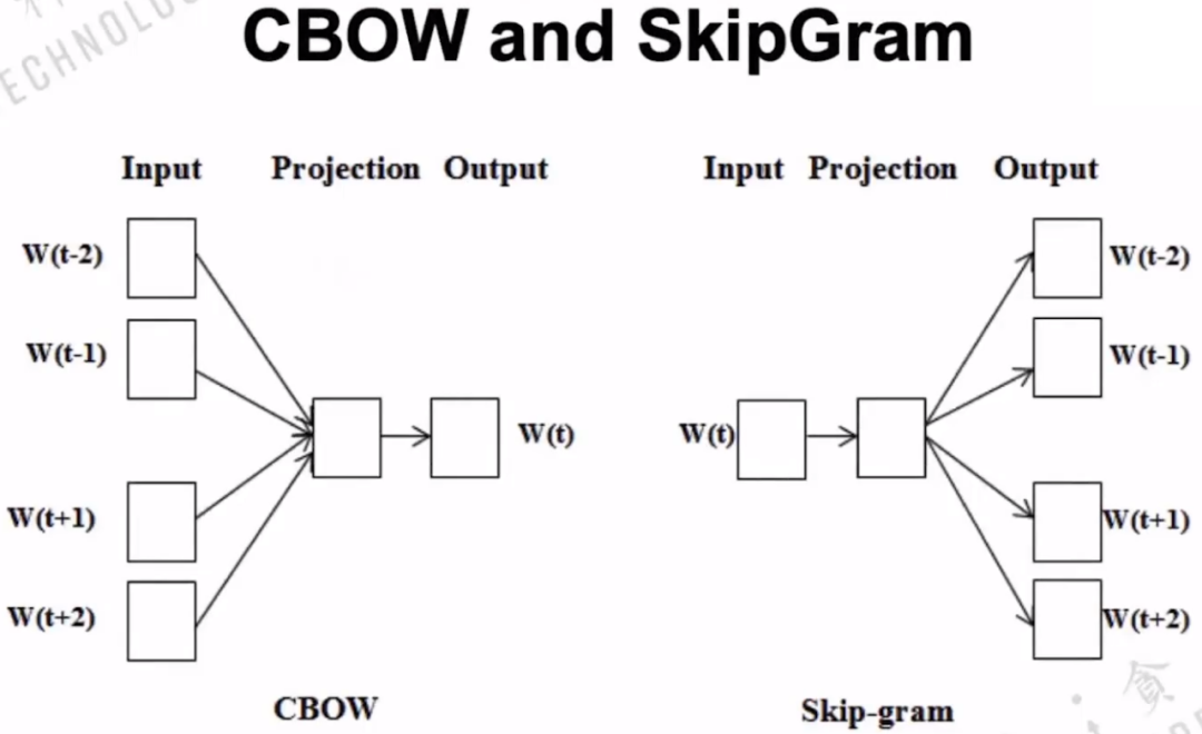 比较经典的词向量模型是Word2Vec,主要包含两个模型:CBOW和SkipGram模型。CBOW是根据上下文来预测中心单词;SkipGram通过中心词来预测上下文的单词。