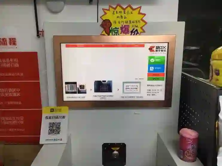 自助商店虽然不能算作自动售货“机”,但它们的本质是一样的。购买流程:将商品条形码对准扫码器——摆放至放置区完成支付——取走商品。
