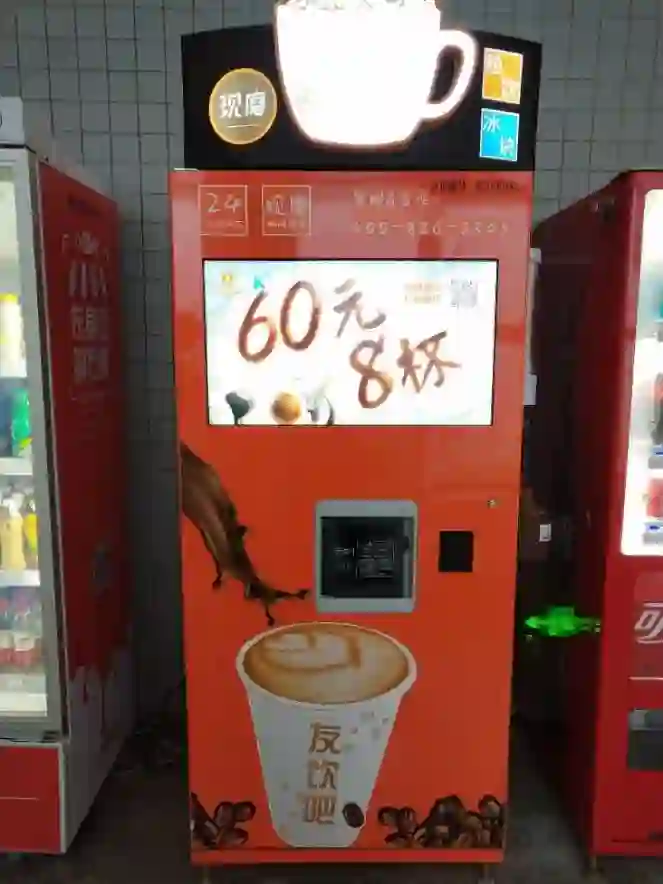 农夫山泉饮料机一台,友饮奶茶咖啡机一台,i-coffee自助贩卖机一台,均可使用。