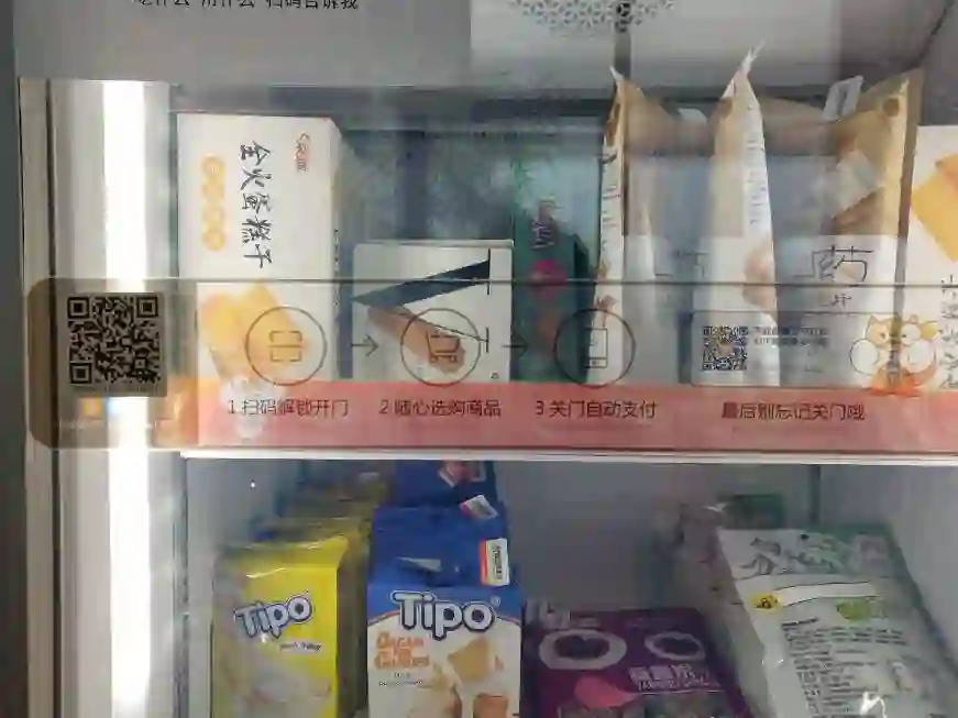 小卖柜的设计与传统的自动售货机有些区别,需要跟个人的支付宝绑定,通过商品上的条形码进行结算。零食柜的购买程序:扫码解锁开门——随心选购商品——关门自动支付(划重点:记得关门)。温馨提示:在选择商品的时候记得检查商品上的条形码是否恰当哦。