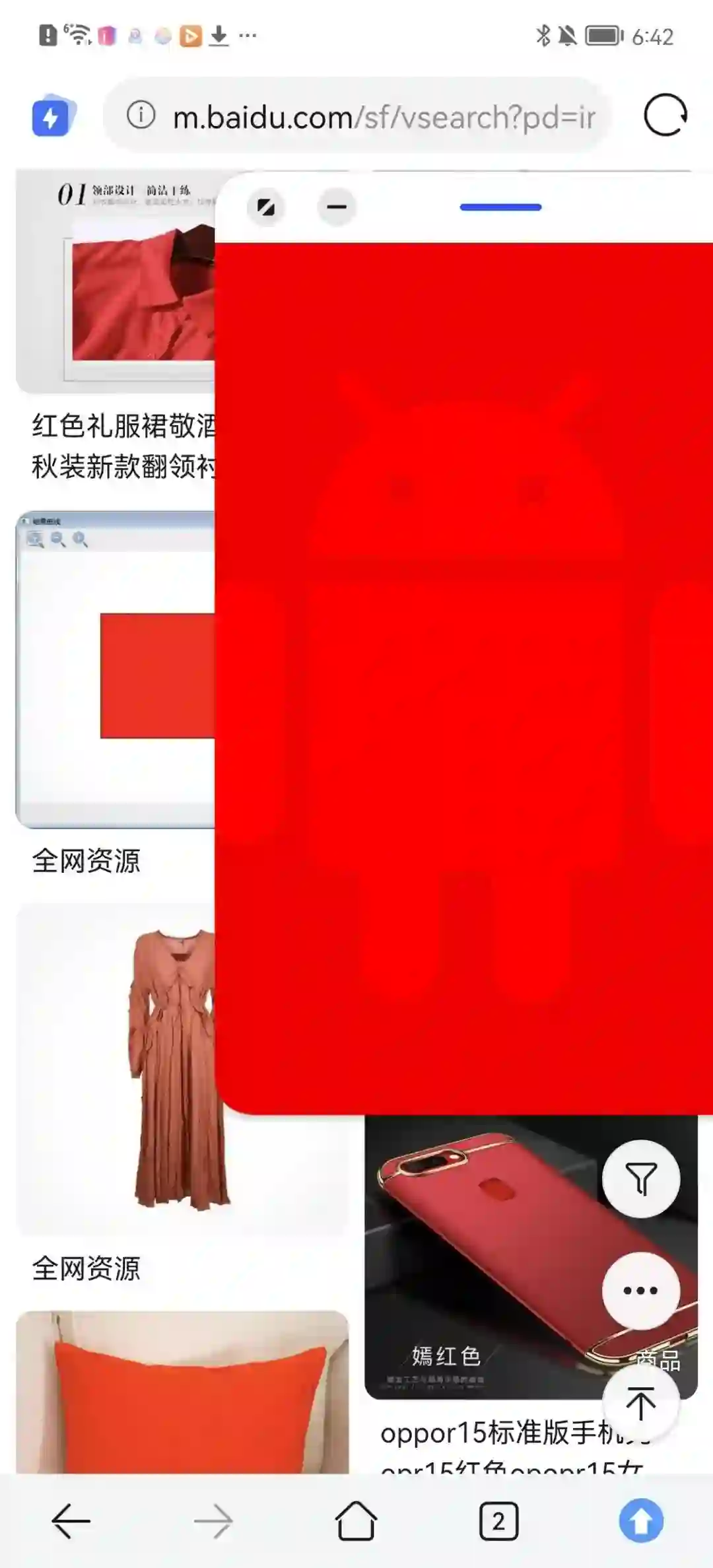 这个图使用了两种红色,全都在 sRGB 覆盖面积之外。如果你的设备支持色彩管理,屏幕也支持广色域,那么你就能在图中看到一个鲜艳的红色 Android 机器人;如果色彩管理当中任何一个环节出现问题,显示的效果都会出错,并且错得还各不相同,后面我都会用这一张图做举例说明。