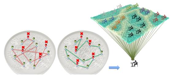 宏观的世界就像是地图,把每栋楼比作一道题,重新深入学习,把知识点较近的题目聚拢到一起,偏离较远的排斥开,映射成一张类似于地图的结构。这样做有什么好处呢?