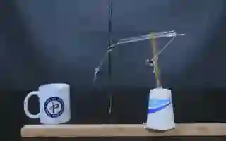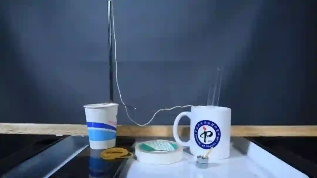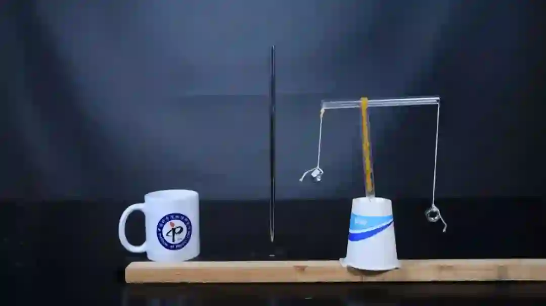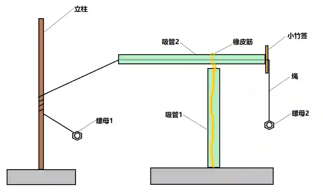 从装置图可以看到,绳子穿过吸管连接着螺母,形成了一个无固定悬挂点的摆。当我们释放水平吸管时,吸管受到橡皮筋对它作用力开始转动,螺母由于受绳子的牵引也会跟着转动,但是,当绳子在运动过程中触碰到立柱时,会发生缠绕,此时橡皮筋被“擒”,停止作用。缠绕结束以后,由于重力的作用,螺母开始下落,释放重力势能,带动绳子解开缠绕。缠绕解开后,螺母就不再提供动力,这时橡皮筋被“纵”,又开始对吸管产生作用力,这样就回到了最开始的情形。一擒一纵,一收一放,如此往复,就形成了一个有较长周期的周期运动。