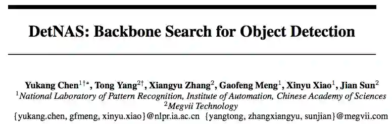 物体检测器通常使用图像分类网络的Backbone,由于和检测任务存在一定差异,这些Backbone往往不是最优的。本文中,旷视研究院提出DetNAS,这是首个用于设计更好的物体检测器Backbone的神经网络搜索方法;由DetNAS搜索出的框架在COCO上的性能超越了ResNet-50与ResNet-101,且模型计算量更低。本文已收录于神经信息处理系统大会NeurIPS 2019。