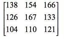 与卷积核卷积,结果为154。接下来,再向右滑动一位,将第三个位置处的子图像与卷积核进行卷积,结果为166。处理完第一行之后,向下滑动一行,然后重复上面的过程。以此类推,最后得到卷积结果图像为: