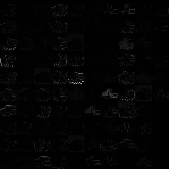 用AlexNet网络处理之后,第一个卷积层的输出结果(我们把各个卷积核的结果依次排开了)是这样的: