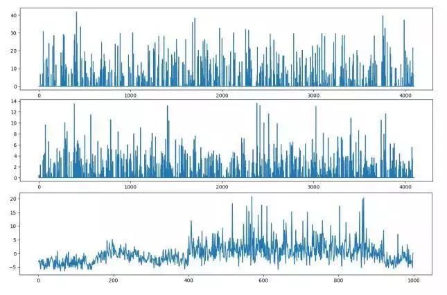 卷积层3-5的结果在上图中依次排开。然后我们看全连接层,下图自上向下是3个全连接层的输出结果: