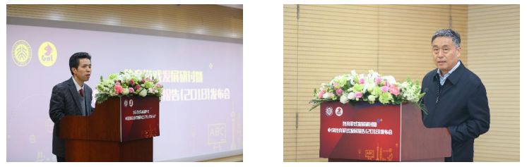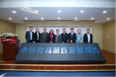 丁新、吴善超、教育部基础教育司装备与信息化处张权处长、教育部教育装备研究与发展中心中小学理科装备处刘强处长、吉林省电教馆王喆副馆长、中国教育技术协会教育游戏专业委员会理事长尚俊杰、副理事长章苏静教授共同发布了中国教育游戏发展报告(2018)。